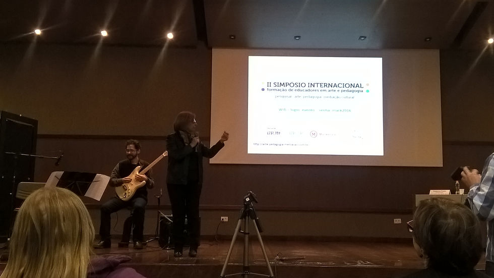 Valquíria Prates, da UNESP, trouxe a problematização das Viradas sociais nas artes (o convívio comunitário na esfera pública) e a virada educacional/pedagógica das artes (como as pessoas aprendem em instituições educacionais/artísticas). Com um olhar mais apurado, o Prof. Dr. Marcos Santos questionou “como trabalhar a pesquisa em um campo minado de pesquisas? Vira citação da citação”. Para ele existe um obstáculo grande que é “para onde foi o fazer? Para onde foram as mãos?”. Mãos essas que são menosprezadas por terem como herança histórica trabalhadores comuns e não artistas, seriam eles pobres, fazedores, técnicos e artesãos. Em outro momento amplia a discussão questionando que “a escolarização do ensino superior deve ser combatida. Onde estão as mãos? Onde pensa, discute, conversa, experimenta, faz com as mãos?” crítica que sugere que a pesquisa é importante mas é preciso ter resultados aplicados na prática.