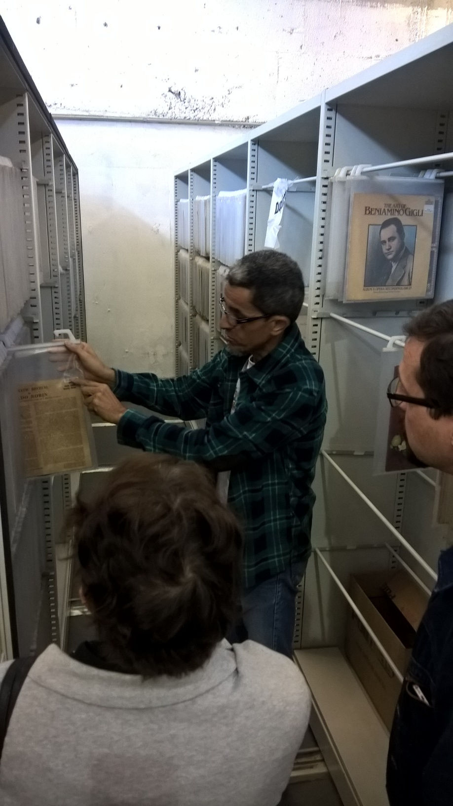 Na manhã do dia 1º de agosto, a equipe do MOSB que está trabalhando no projeto prêmio do ProAC 2015 visitou o Centro Cultural São Paulo - CCSP para conhecer sua Discoteca e os processos de higienização, catalogação e digitalização do acervo.